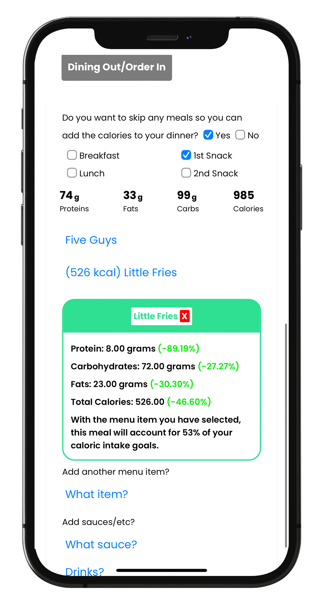 Want to dine in/out while still hitting your goals? Choose from your favourite restaurants and even combine meals to hit your macro and calorie targets!